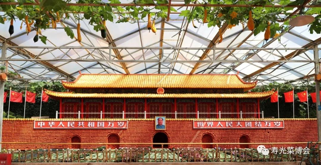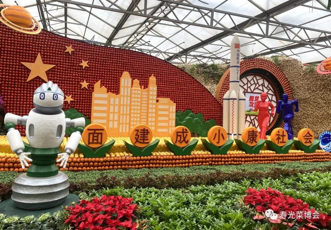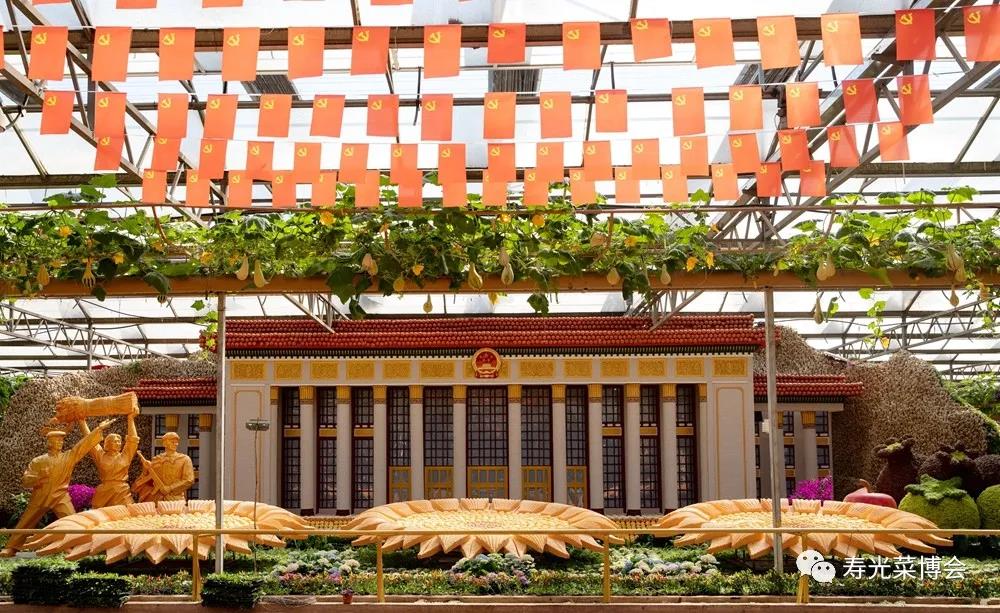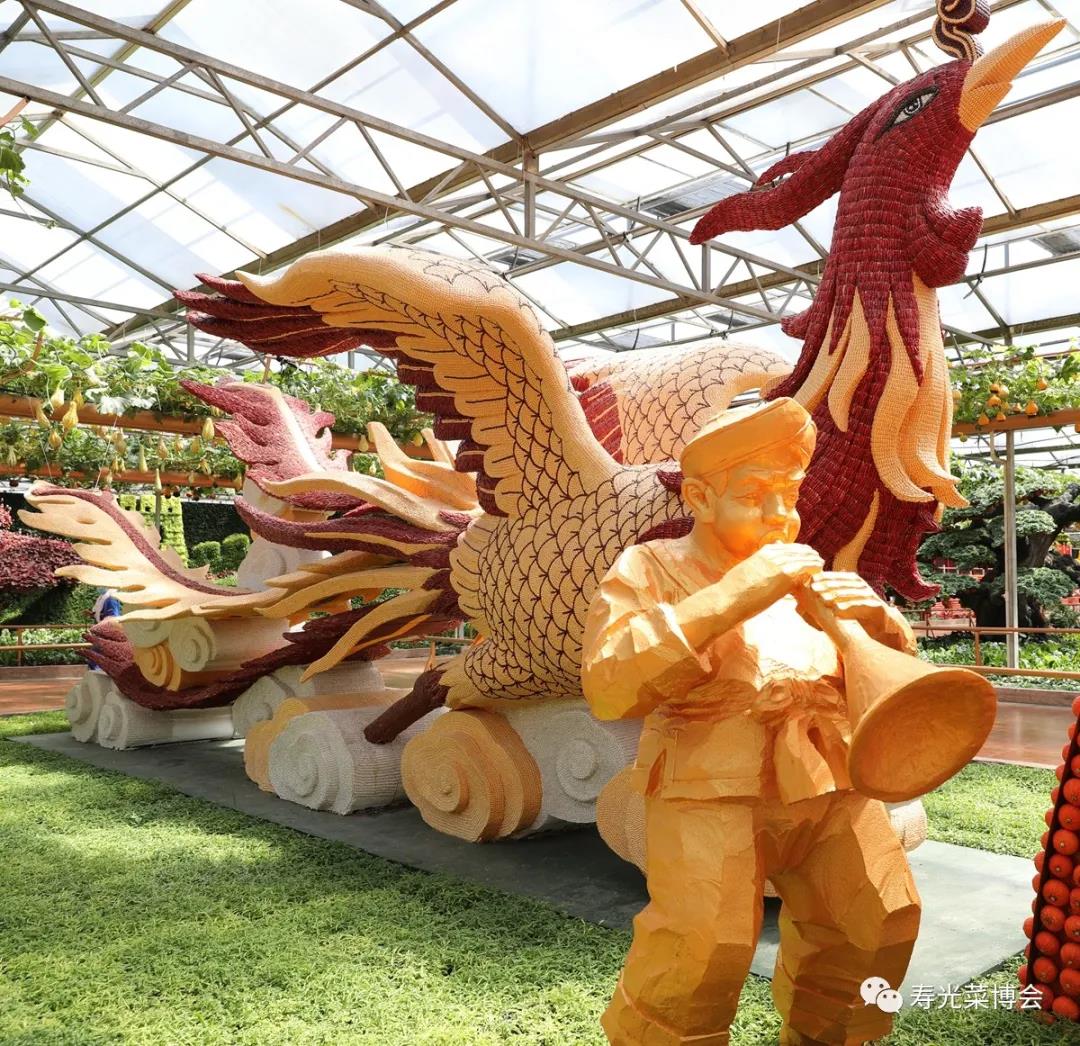 喜庆伟大成就。今年是中国共产党百年华诞。从建党的开天辟地,到新中国成立的改天换地,到改革开放的翻天覆地,再到党的十八大以来党和国家事业取得历史性成就,发生历史性变革,中华民族迎来了从站起来、富起来到强起来的伟大飞跃。“喜迎百年”景点,以仿真、雕塑、彩绘等艺术手法,将巍然屹立的华表、庄严威武的仪仗兵、欢欣鼓舞的各族群众,绘制成一幅视觉强烈、气势磅礴、震撼人心的喜迎建党百年盛况画卷,表现了全国人民爱党、颂党,永远跟党走的爱国情怀。“盛世欢腾”景点,以我国传说中的祥瑞动物龙凤为主要造型,由菜果粮种雕饰而成。巨龙腾跃,彩凤飞舞,场景宏大,吉祥喜庆,寓意中华崛起,祖国昌盛,万民康乐,共庆辉煌。“中华圆梦”景点,由天安门、华表、长城等中华标识及欢歌劲舞的人民群众组成,展现出各族人民庆祝全面建成小康取得伟大历史性成就,脱贫攻坚取得全面胜利的欢乐场景。这是彪炳史册的人间奇迹!中华民族伟大复兴向前迈出了新的一大步。