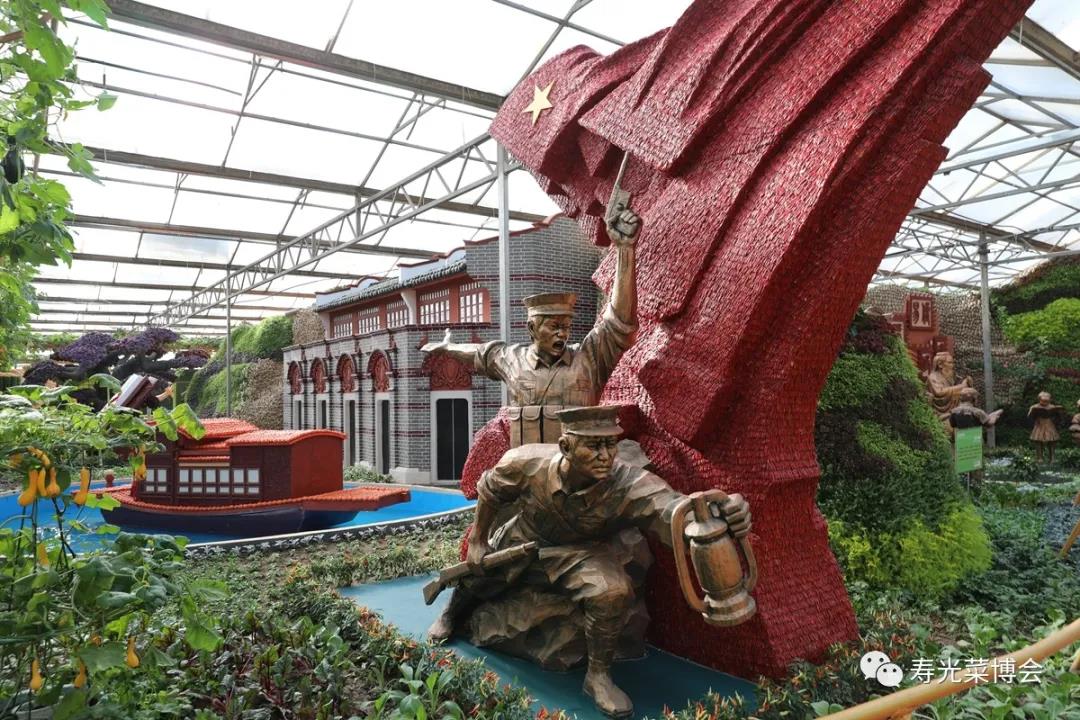 展示光辉历程。百年征程波澜壮阔,百年初心历久弥坚。“百年伟业”景点,运用仿真、扦插、挂果等艺术形式,将中国共产党奋斗、奋发、奋进的光辉历程,以恢弘磅礴的气势、精美绝伦的风采呈现出来。从十月革命一声炮响,给中国送来了马克思列宁主义,到首部《共产党宣言》中文全译本在上海问世;从上海石库门、嘉兴南湖中国共产党开天辟地诞生,到江西南昌起义,打响武装反抗国民党反动派的第一枪;从“军叫工农革命,旗号镰刀斧头”的秋收起义,到“红军不怕远征难,万水千山只等闲”的万里长征;从马克思主义中国化的毛泽东思想、邓小平理论、“三个代表”重要思想、科学发展观,到习近平新时代中国特色社会主义思想;从我国改革开放和社会主义现代化建设取得的历史性成就,到全面建成小康社会、构建人类命运共同体得到国际社会广泛认同,百年峥嵘岁月扑面而来,既引人入胜,又耐人深思,让每位参观者激荡思想,激励意志,从中汲取智慧和力量。