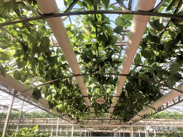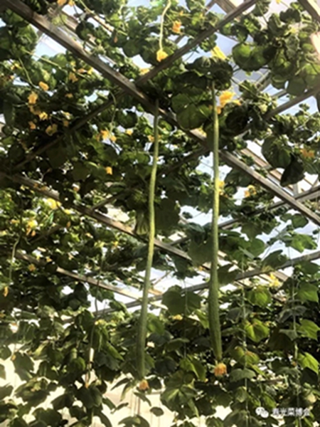 六号馆为无土栽培模式展示馆,集中展示了复合式、A型架、苗床式、立体管道式、气雾栽培、阳台栽培等模式二十多种,还有西红柿树、辣椒树、茄子树、空中红薯等蔬菜树式栽培,共定植了100多个品种的茄子、西红柿、瓜类、叶菜类等菜苗5万多棵。