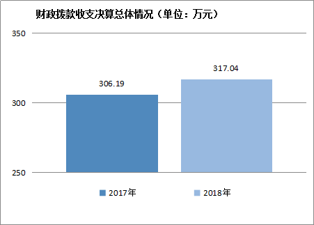 2018年度收、支总计 317.04万元。与2017年相比,收、支总计各增加10.85万元,增长3.5%。主要是人员工资及相对应人员的社会保险费、职业年金、公积金等费用的增加。