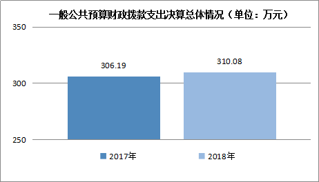 2018年度一般公共预算财政拨款支出年初预算为305.09万元,支出决算为310.08万元,完成年初预算的101.6%。决算数大于年初预算数主要原因是人员工资及相对应人员的社会保险费、职业年金、公积金等费用的增加。其中: