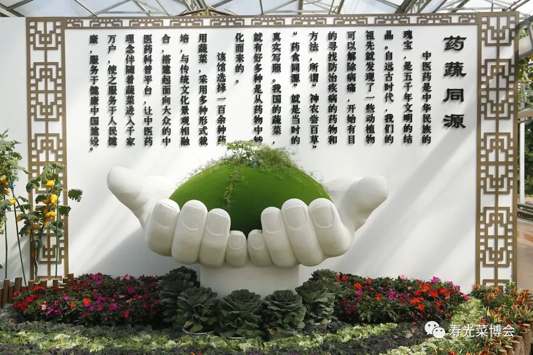 本届菜博会突出地域特色,深化蔬菜与科技、文化的融合,打造了独具菜乡特色的创意农业。以“喜迎党的二十大”为主题,以新时代辉煌业绩为内容打造的“天下情怀”等蔬菜文化景观200多处。选择培育100余种药用蔬菜,将中医药科普、传统文化、健康饮食理念相融合,让健康养生理念进入千家万户。以寿光“三圣”雕塑为核心,结合优良蔬菜品种的廊架园艺栽培模式,精心打造了“圣山叠翠”景观,展现出蔬菜之乡人与自然和谐发展的美好愿景。