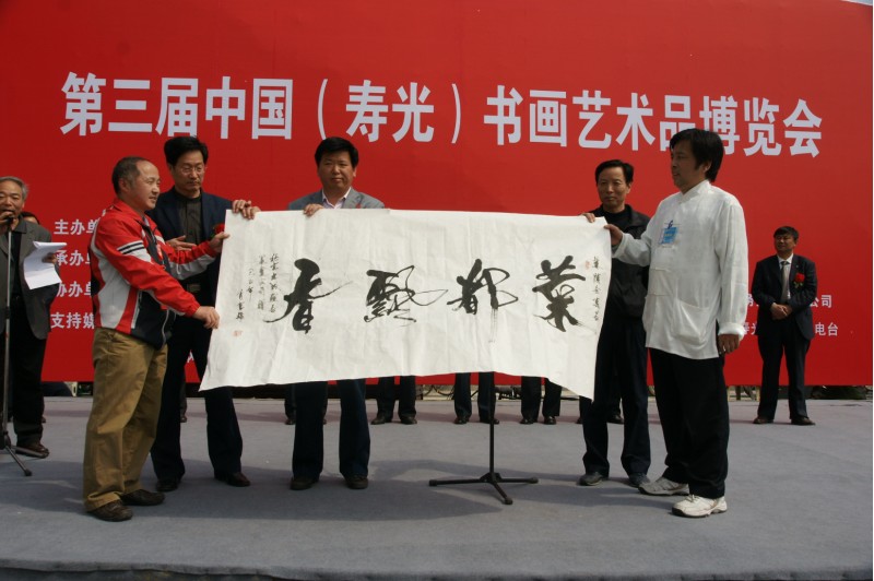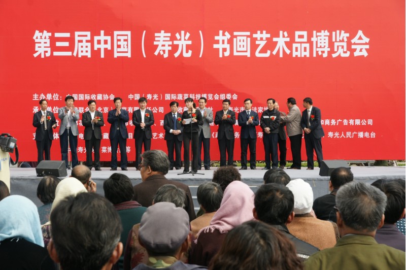 在第十届中国(寿光)国际蔬菜科技博览会举办期间,由中国国际收藏协会、中国(寿光)国际蔬菜科技博览会组委会联合主办,大成联合(北京)展览有限责任公司、收藏界杂志社承办的第三届中国(寿光)书画艺术品博览会今天上午在菜博会主会场隆重开幕。